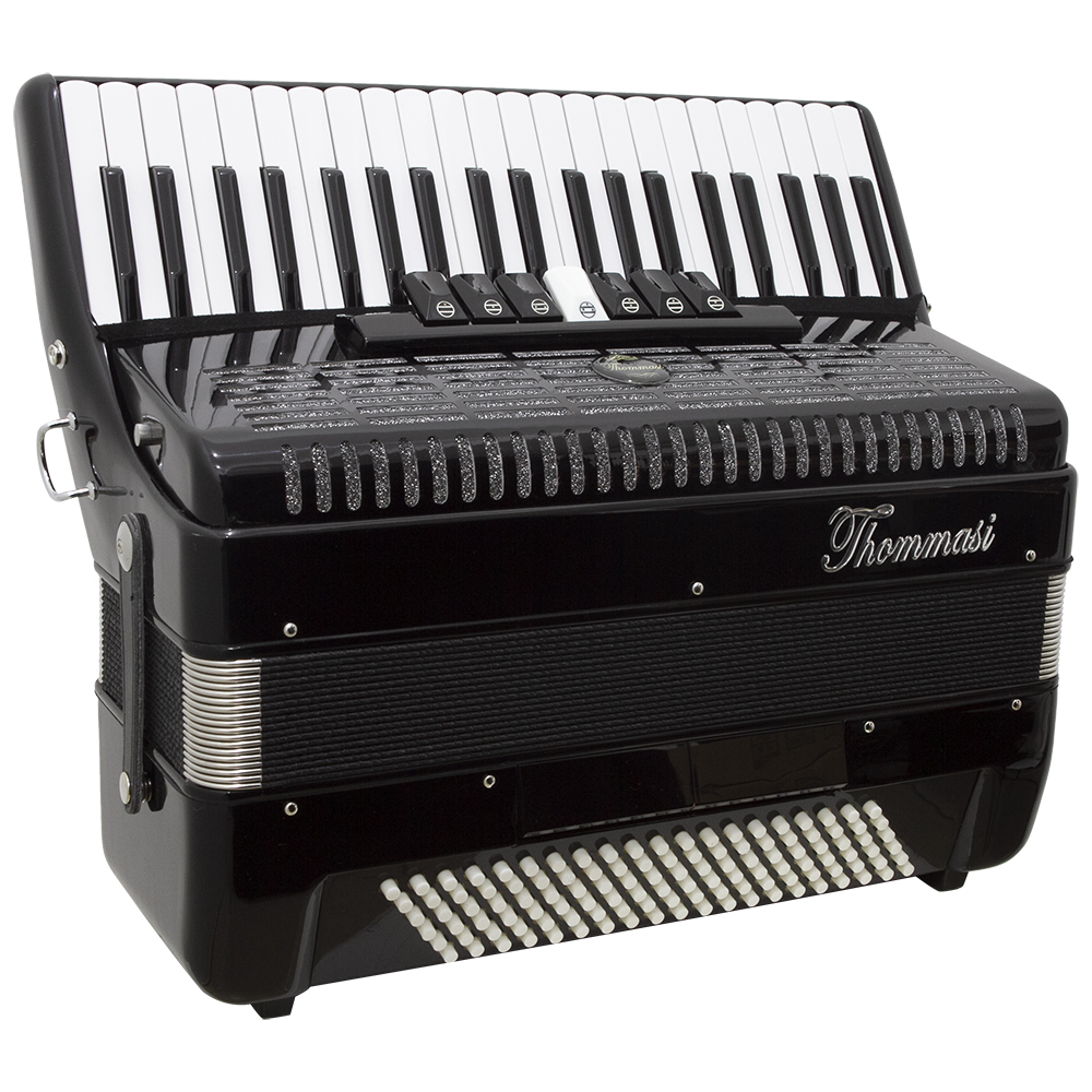 Acordeon TA-12009 Thommasi possui 120 baixos e 41 teclas é produzido com material de alta qualidade e possui um ótimo acabamento. É um instrumento com ótima sonoridade e durabilidade além da tocabilidade versátil.