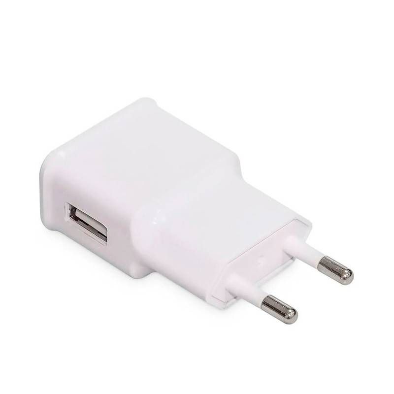 Carregador em ABS de qualidade superior, disponível em duas opções de cores (Branco ou Preto).