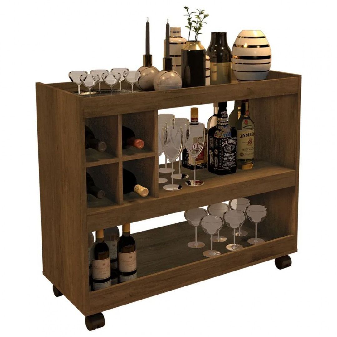 Aparador Bar Com Rodizios Madeirado Em Mdf [F031]