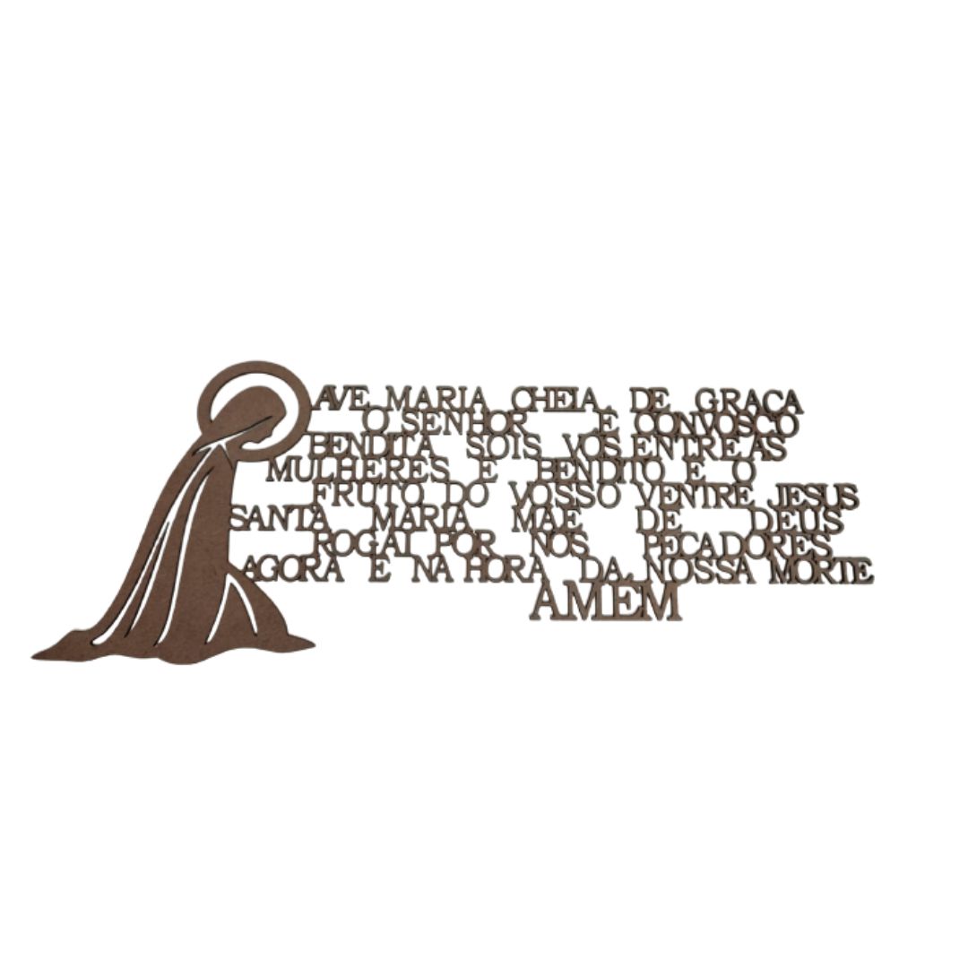 quadro decorativo oração ave maria com a imagem santa, otimo presente para dar alegria a seu ambiente. Feito em mdf 3mm cortado a laser acompanha dupla face no produto.