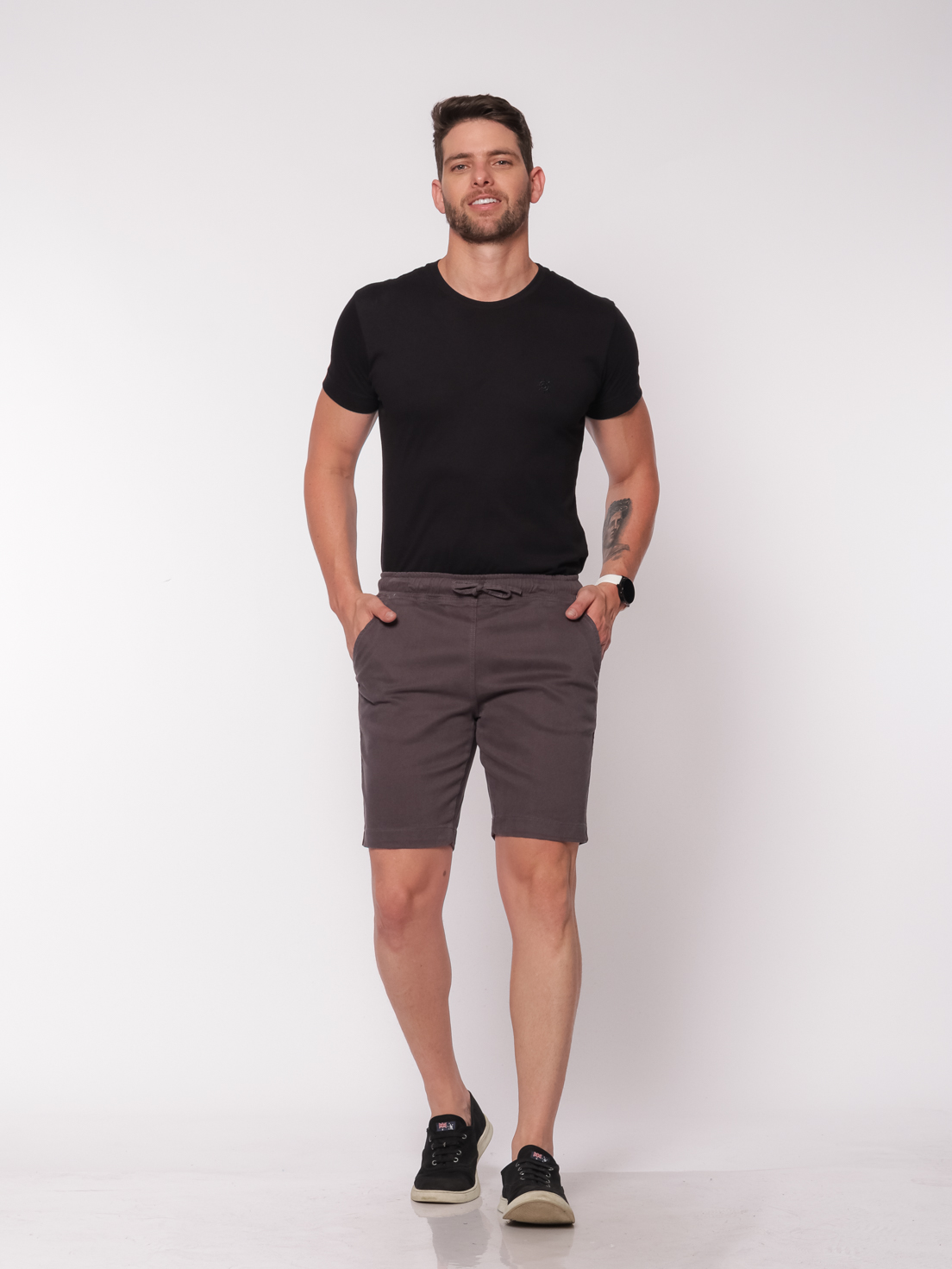 Bermuda cós elástico de sarja.