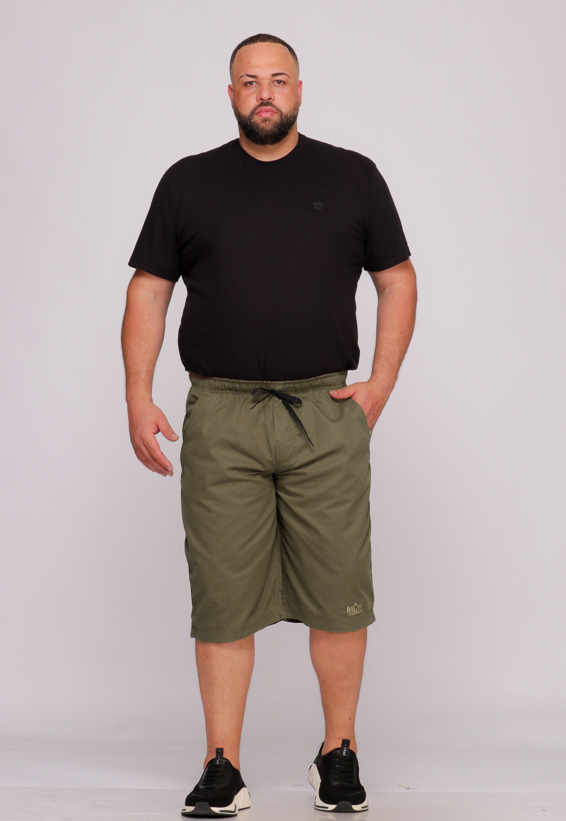 Bermuda cós elástico de sarja.