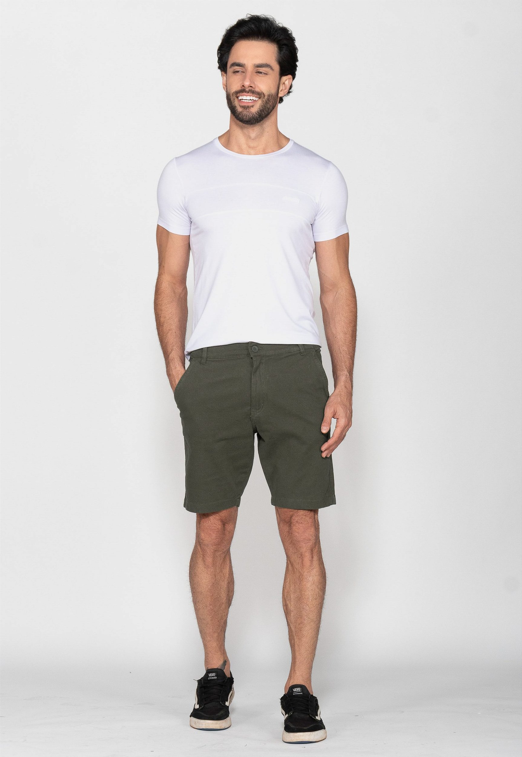 Bermuda básica de sarja com bolso social.