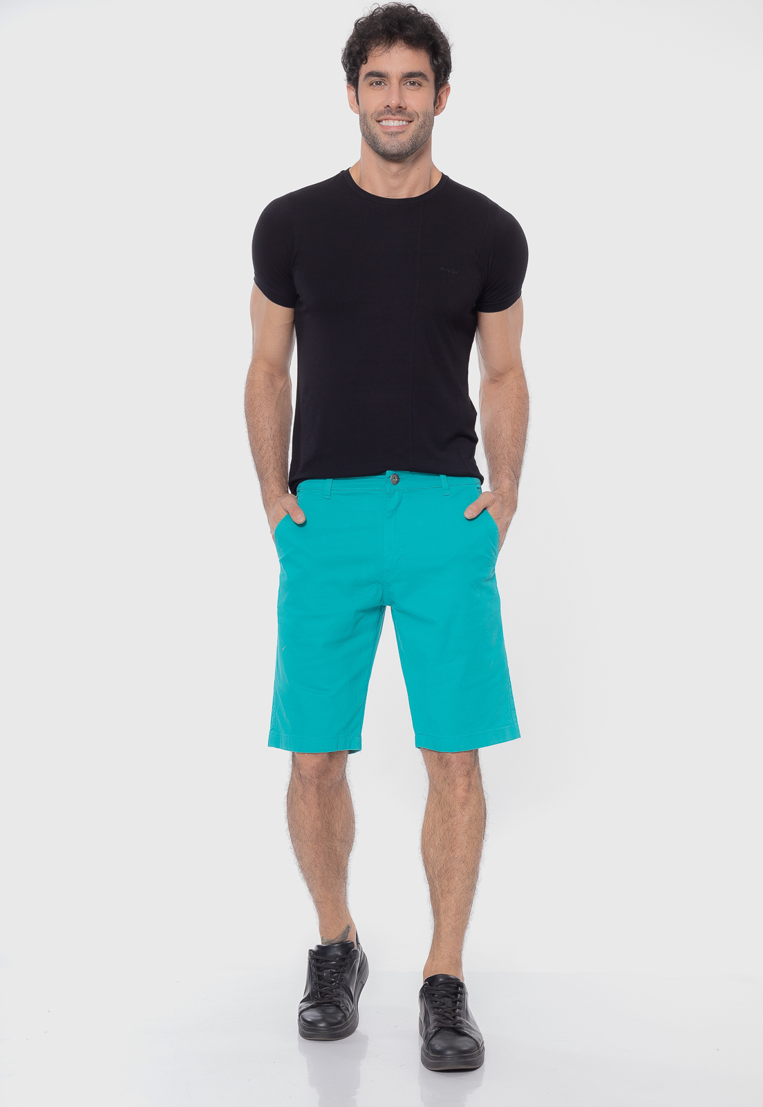 Bermuda de sarja colorida bolso faca e bolso traseiro.