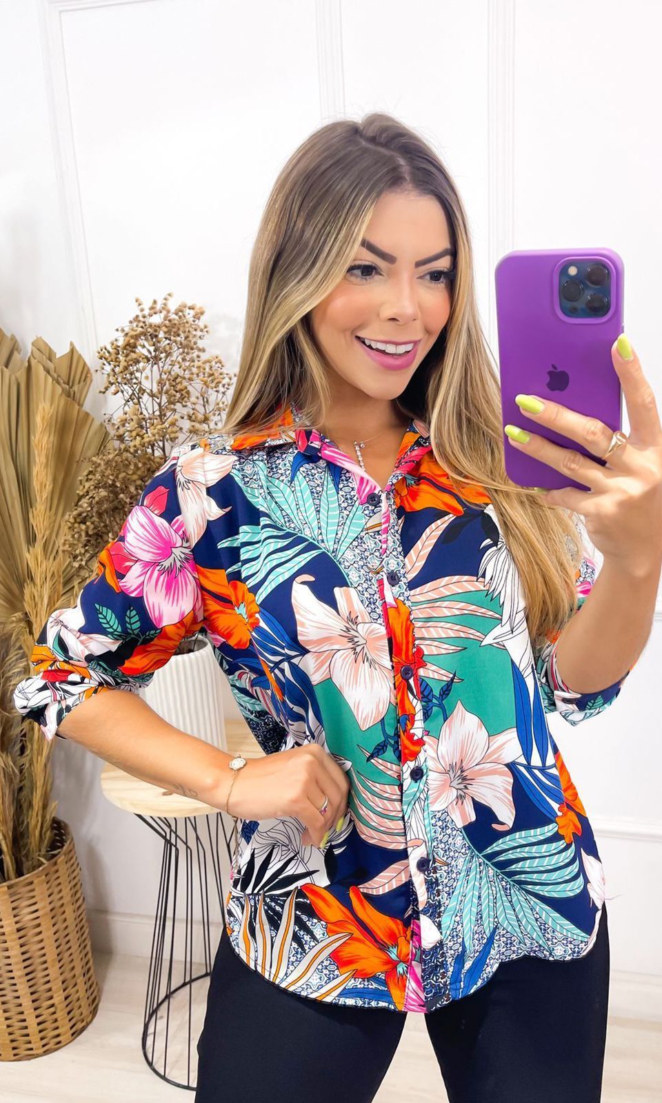 Blusa de Crepe manga longa. Possui detalhe floral. Com caimento leve sobre o corpo, essa peça é confortável e estilosa.