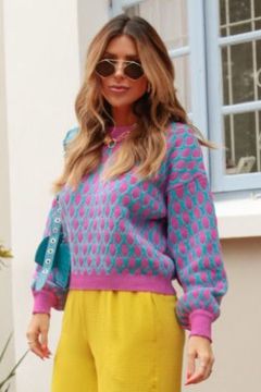 Blusa tricot manga longa. Estampa geométrica com duas cores. Modelo perfeito para os dias mais frios.
