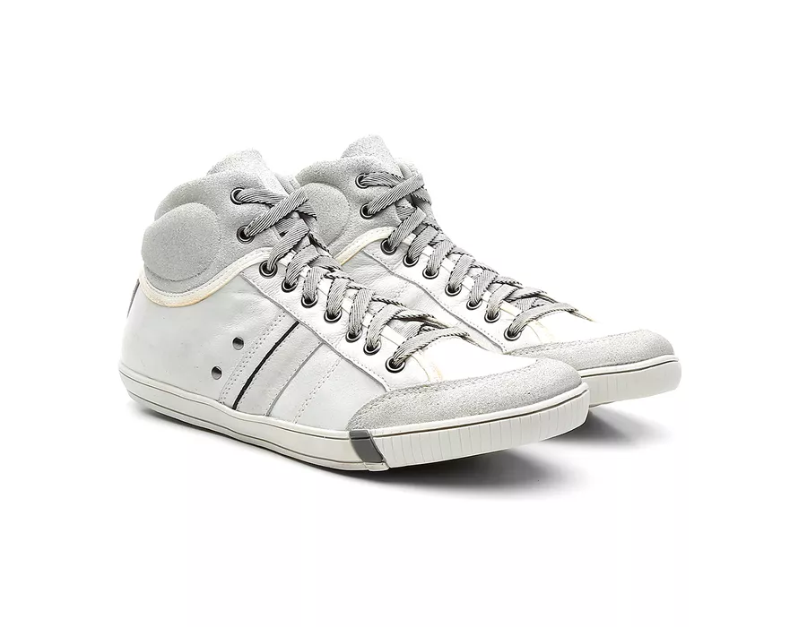 Bota Casual masculina com visual moderno, indicado para o seu dia-dia e momentos de lazer; Para homens modernos e de personalidade; Em Napa Fly (Soft) Off White com detalhes em Preto - extremamente macio e confortável; Forro de Tecido e solado em t. R.; 100% Feito-à -mão / Autêntico Couro de origem Bovina / 100% Couro.
