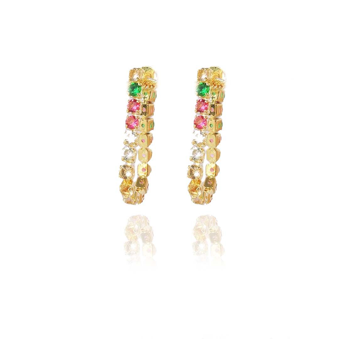 Esse brinco é composto por uma corrente de zircônias coloridas que são sortidas. Cada brinco desse modelo é único, você não verá ninguém com as mesmas cores de zircônias que o seu.