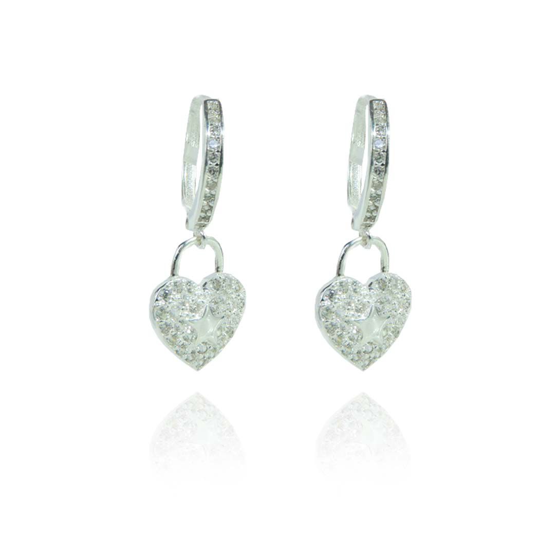 Deslumbre-se com o Brinco de Argolinha Coração em Prata 925, adornado com Mini Zircônias e uma Estrelinha Desenhada no Centro.