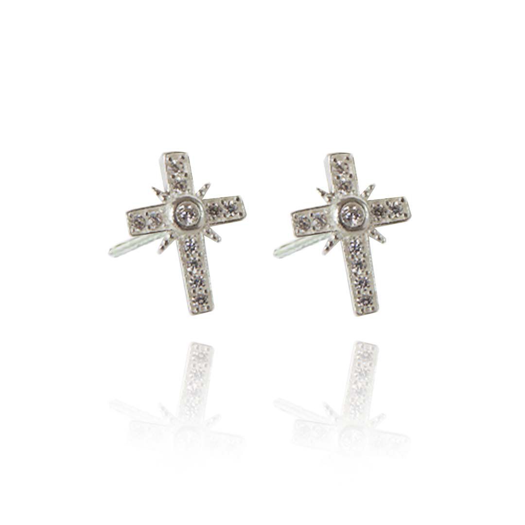 Embrace a sofisticação e a espiritualidade com nosso deslumbrante Brinco de Cruz com Zircônias Brancas em Prata.