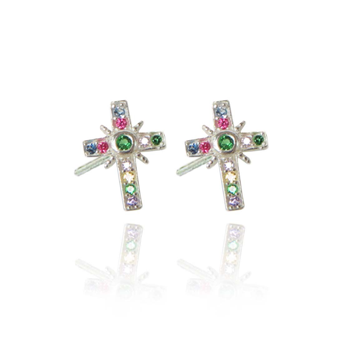 Adquira agora mesmo o Brinco de Cruz com Zircônias Coloridas em Prata 925 e ilumine cada momento da sua vida com beleza e significado.
