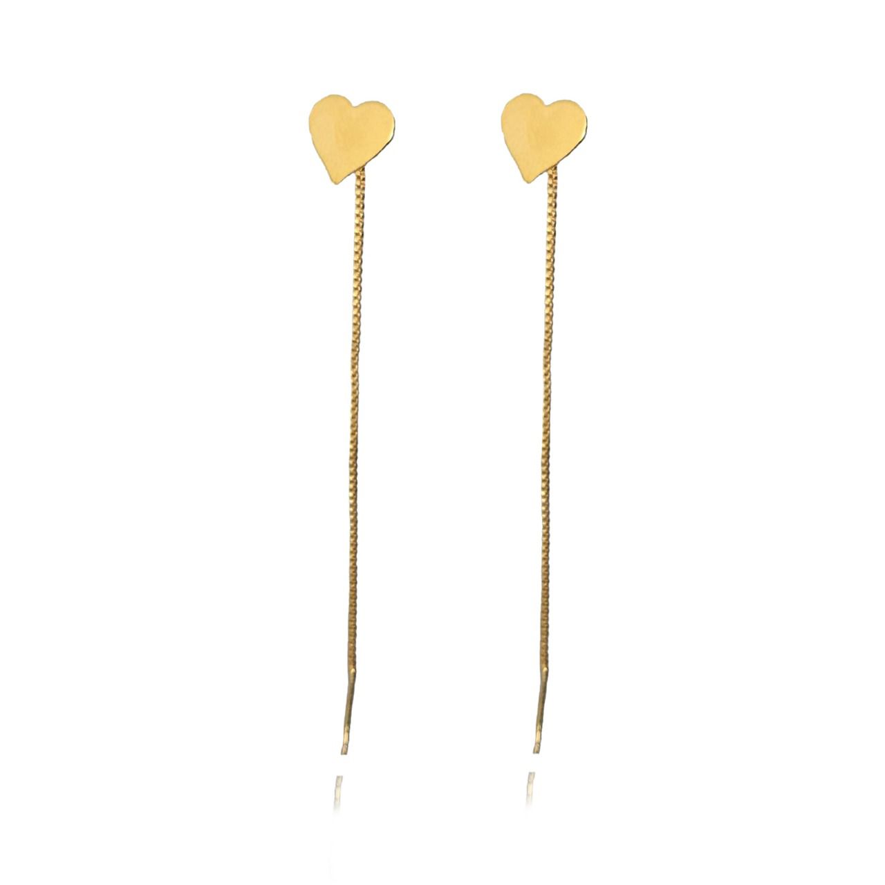 O romance está no ar com o Brinco de Fio com Coração Chapado. Esse brinco é o que podemos chamar de moderno, seu design foi elaborado para que não precise usar as famosas tarrachinhas.