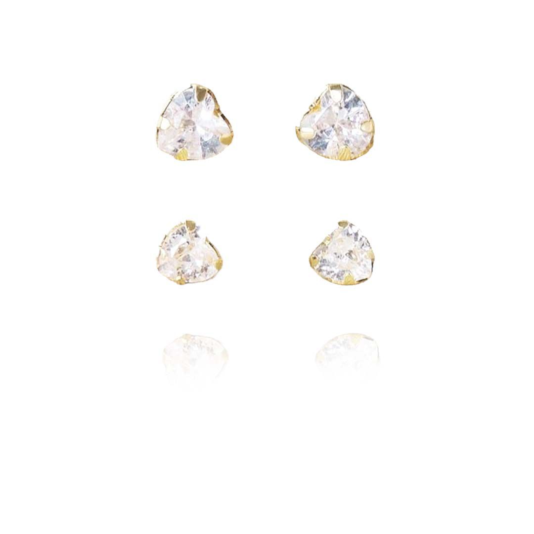 São brincos com zircônias e uma aplicação com design de corações para que seu look se torne mais romântico e exclusivo.