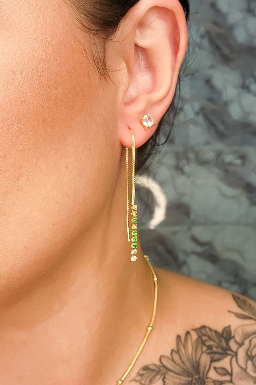 Este brinco apresenta um fio de corrente com zircônias coloridas sortidas, banhado em ouro 18k. O design vibrante e cheio de cor adiciona um toque de alegria e estilo ao seu visual. Ideal para quem busca uma peça única e chamativa, perfeita para complementar looks tanto casuais quanto formais. As zircônias coloridas são cuidadosamente cravadas para garantir brilho e durabilidade.