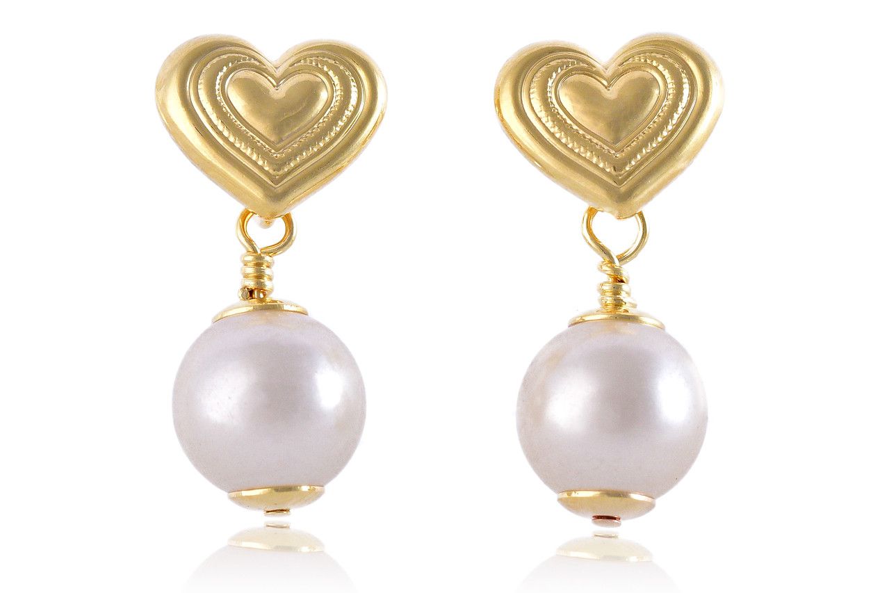 Brinco Médio com Coração Trabalhado e Pérola é perfeito para o dia a dia, pois é um acessório sofisticado e casual, despertando um estilo único de quem o veste.
