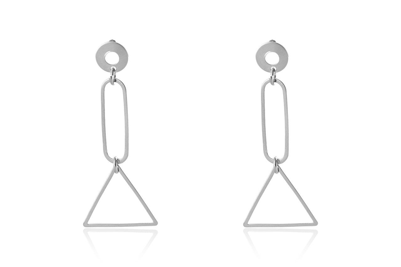 O Brinco Médio com Formas Geométricas é um acessório incrível e perfeito pra todos os estilos, ele é composto por uma forma oval seguido de um triangulo.