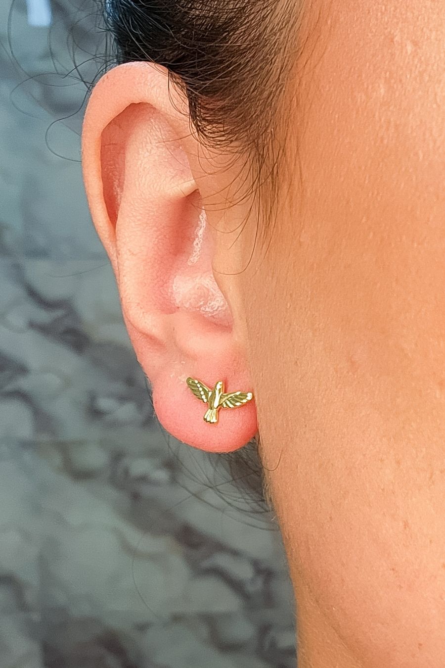 Este brinco apresenta um delicado símbolo do Espírito Santo, banhado em ouro 18k, oferecendo um visual religioso e elegante. O design minimalista torna esta peça ideal para uso diário, adicionando um toque de fé e proteção ao seu visual. Perfeito para quem busca uma joia discreta e cheia de significado espiritual, este brinco é uma escolha encantadora para expressar sua devoção.