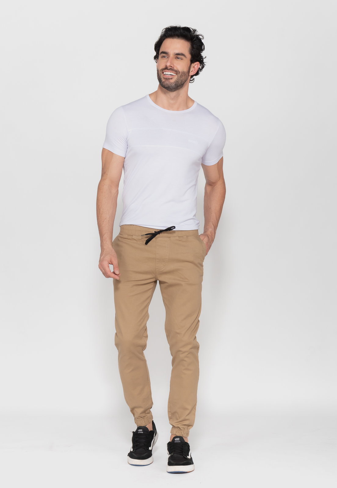 Calça jogger em sarja elastano.