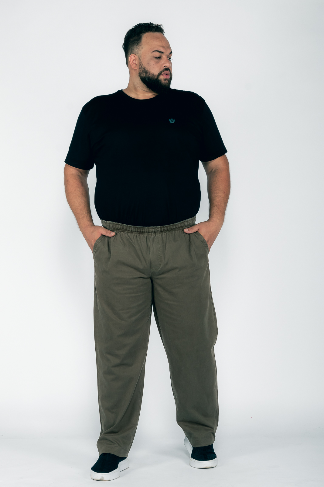 Calça Plus Size em tecido sarja, modelagem confortável, que permite a mobilidade aos movimentos.