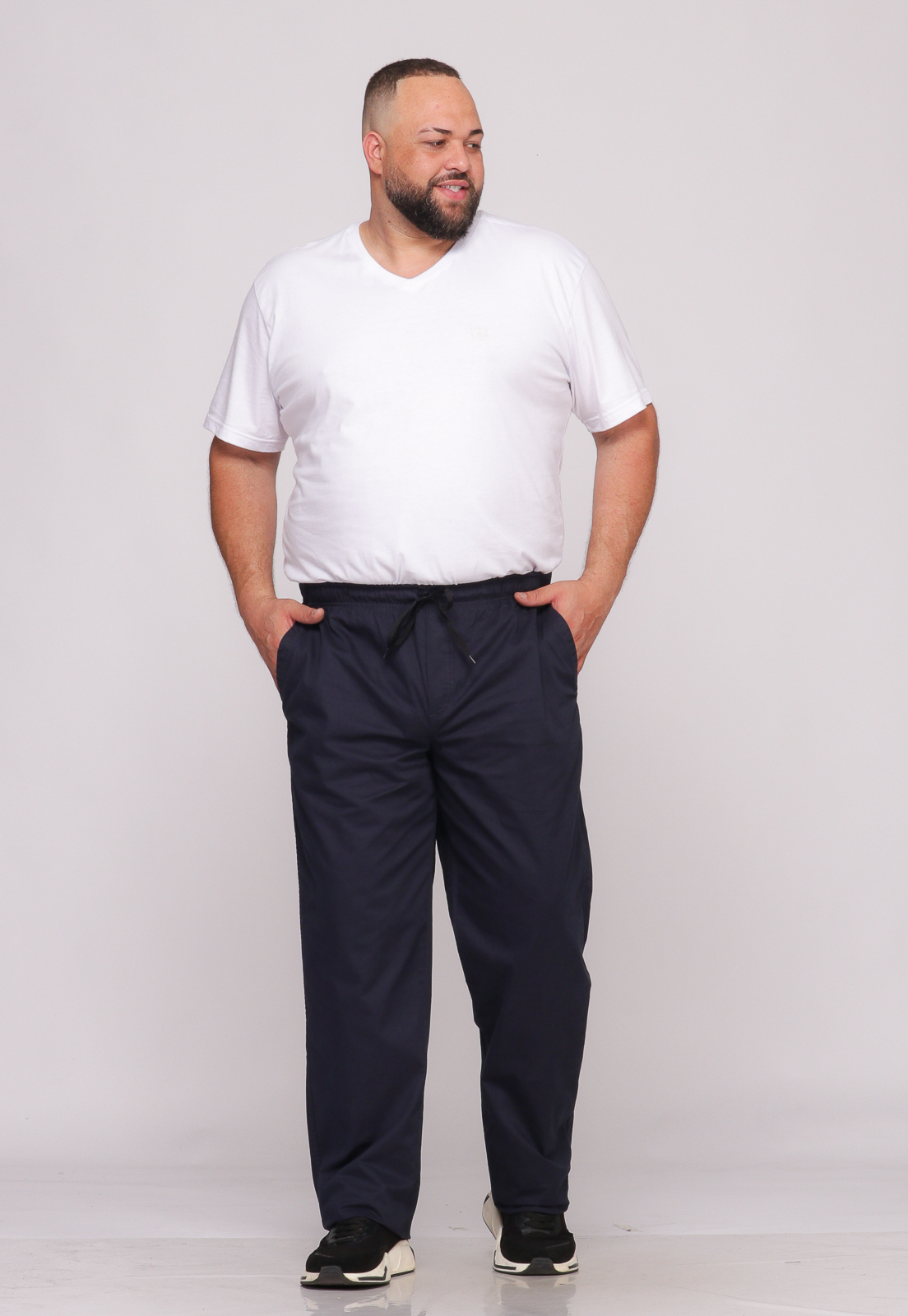 Calça Plus Size em tecido sarja, modelagem confortável, que permite a mobilidade aos movimentos.