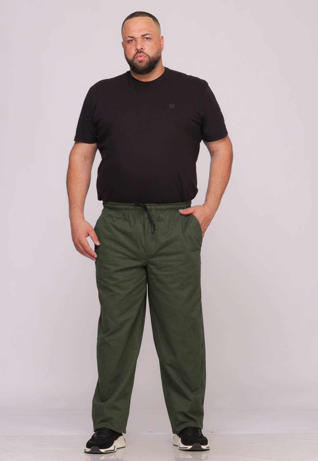 Calça Plus Size em tecido sarja, modelagem confortável, que permite a mobilidade aos movimentos.