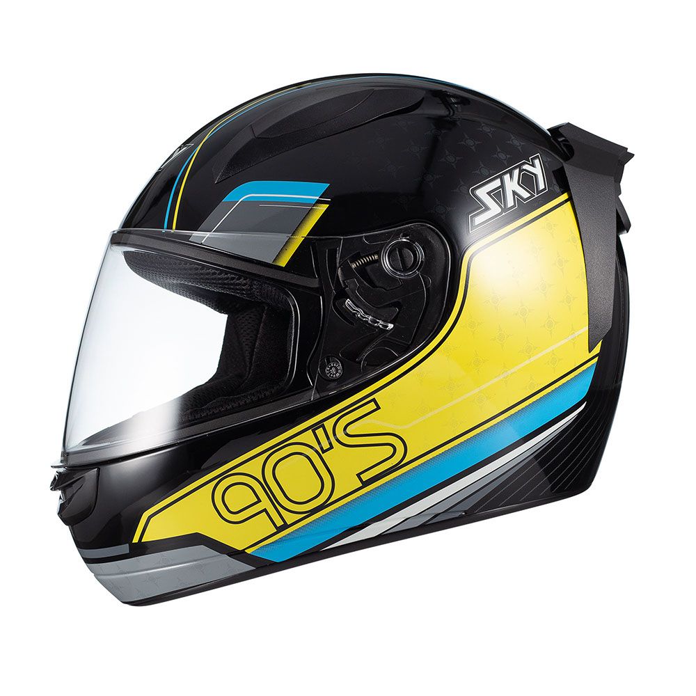 Capacete Sky Two Anos 90 Preto Fosco Transf Azul/amarelo 56 [F016]