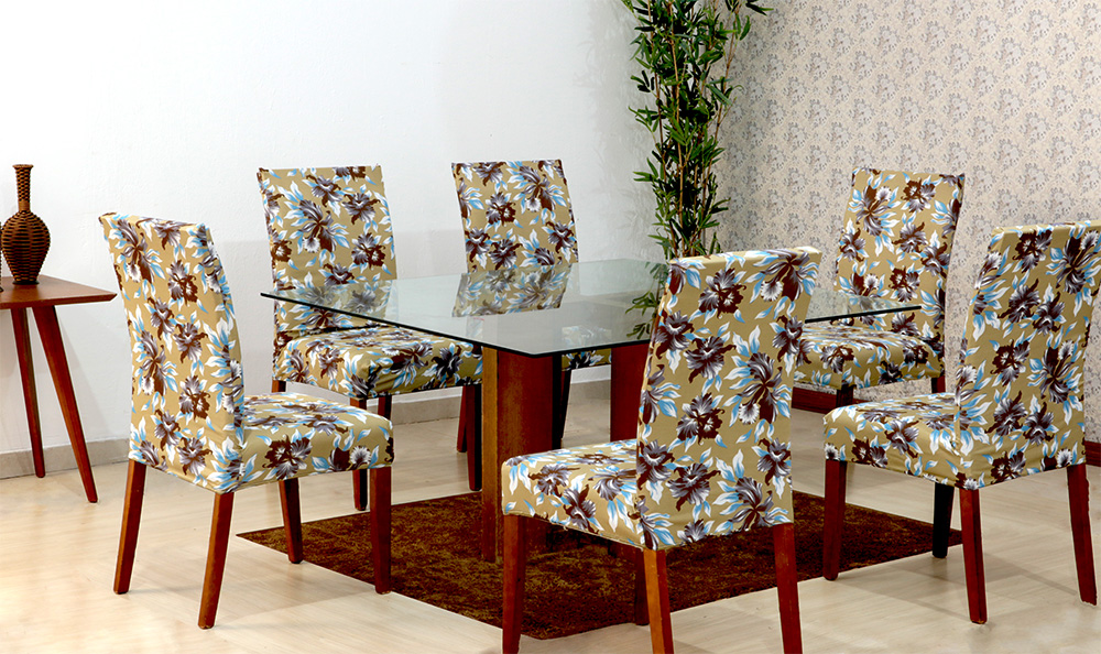 Capas De Cadeira 04 Lugares Floral Bege [F101]