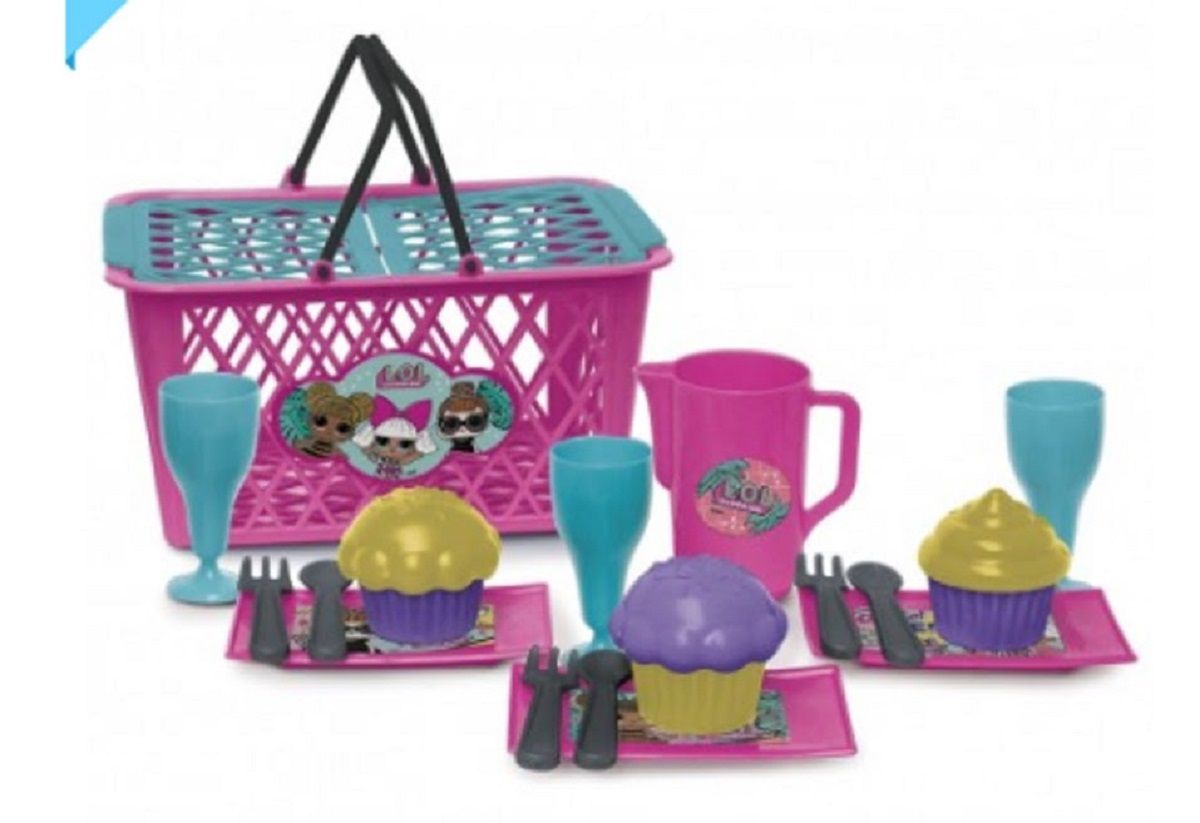 Cesta pic nic 17 peças, incluindo cupcakes, para brincar!