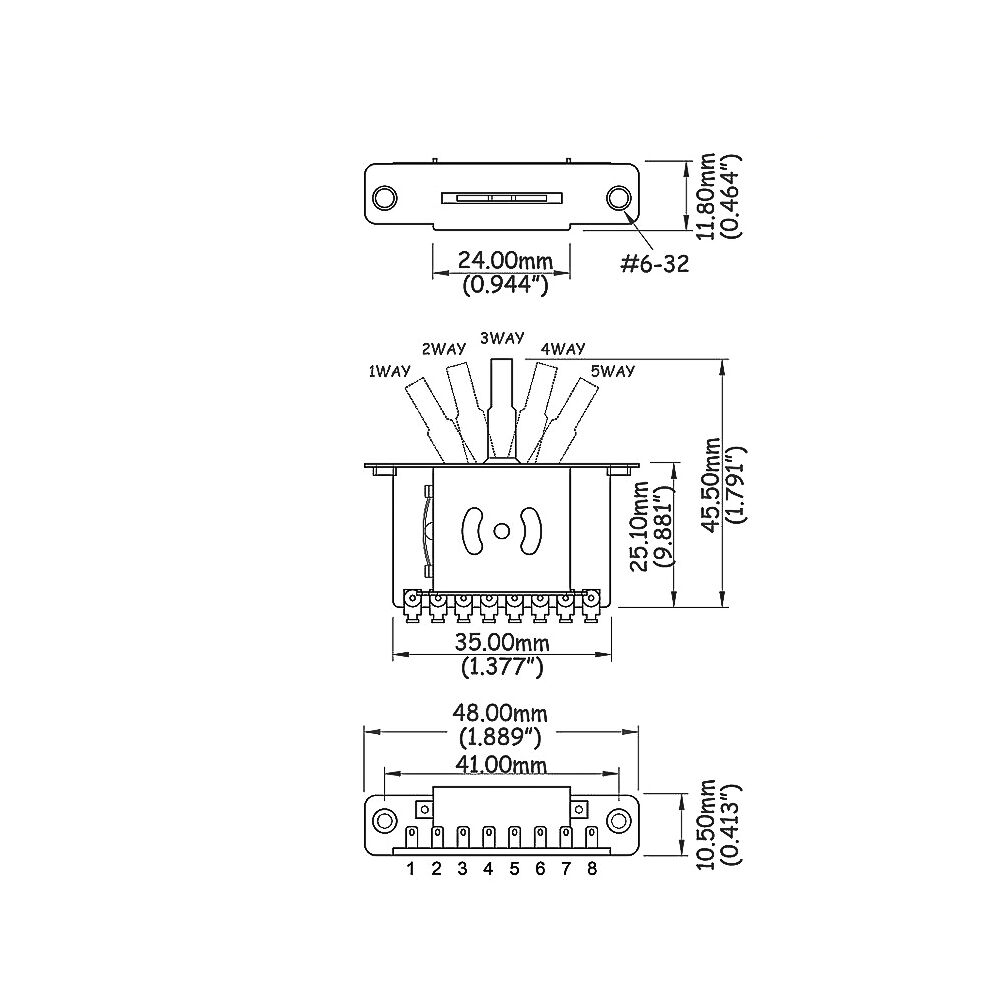 Chave Seletora de 5 posições para instrumentos, modelo Stratocaster, tipo PCB de toque, acabamento cromado com knob preto, parafusos inclusos, Spirit Guitar Parts - CST5-NON #6-32-CR/BK.