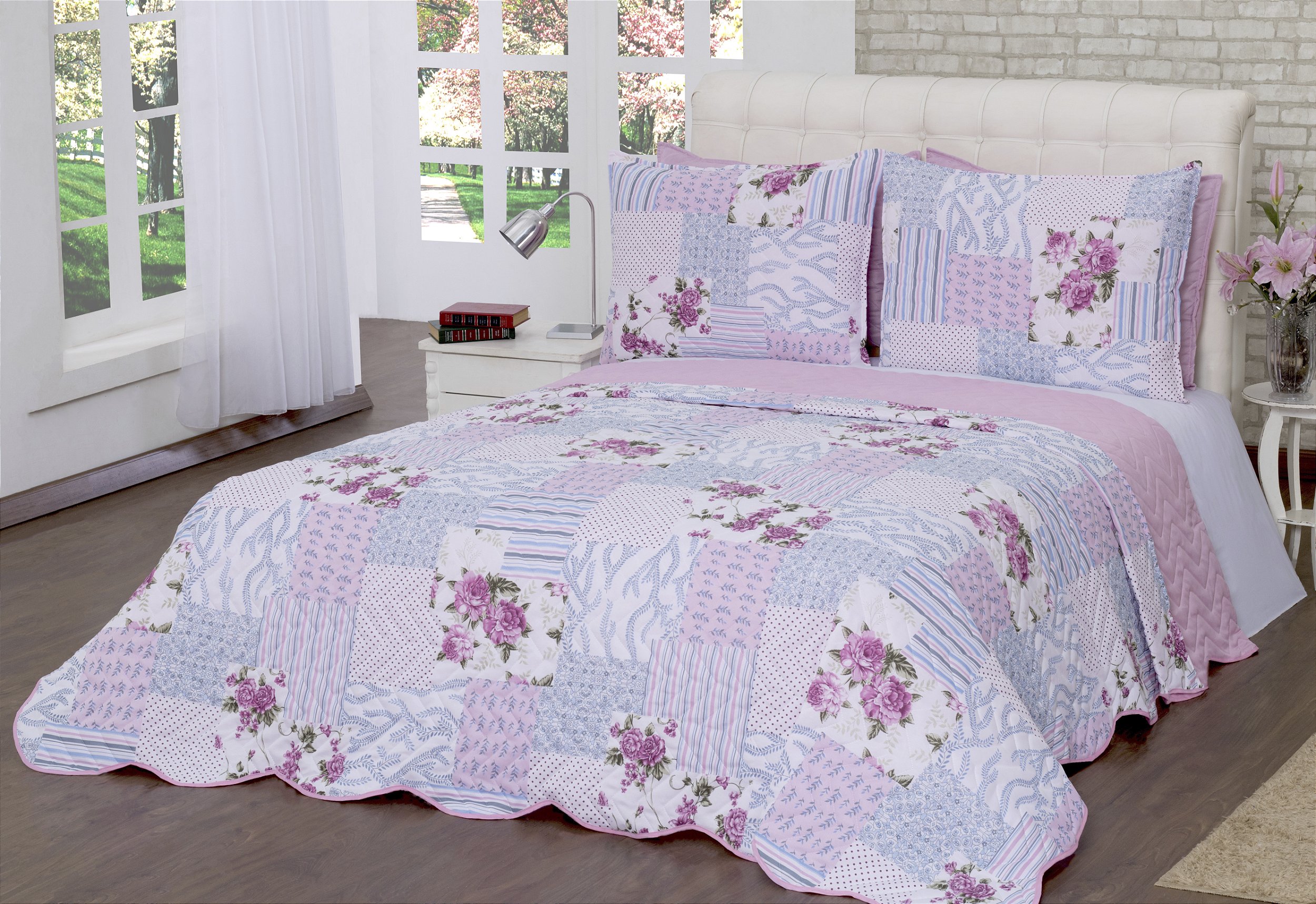Cobre Leito Garden Dupla Face Queen Rosa 03 Peças [F101]