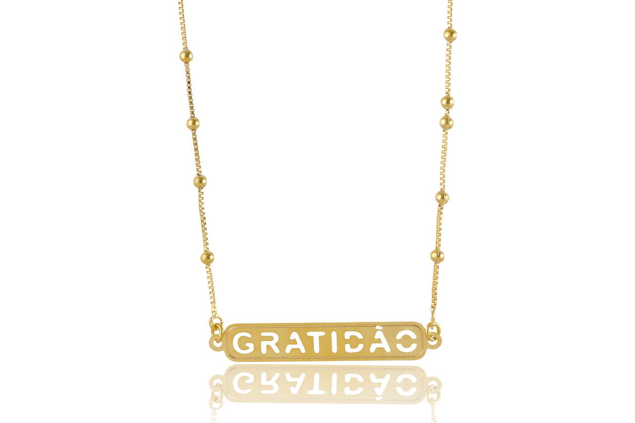 O colar com corrente e pingente gratidão é lindo, um item com uma delicadeza que além de deixar seus looks mais completos vai te encantar profundamente. Um colar ideal para combinações apaixonantes e mix de colares.