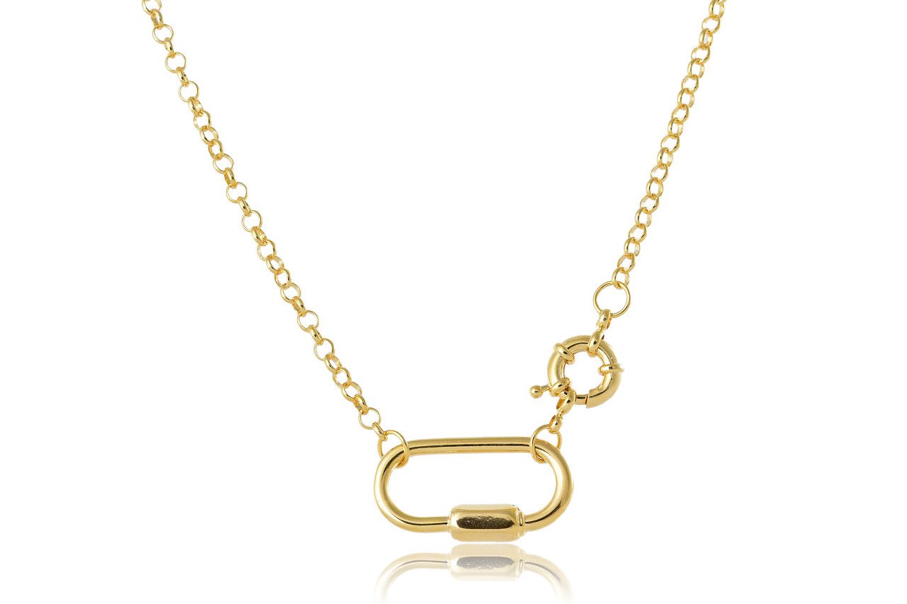 O colar com corrente de elo largo é um item completo que transforma composições simples em marcantes pelo seu fecho em boia com mosquetão.