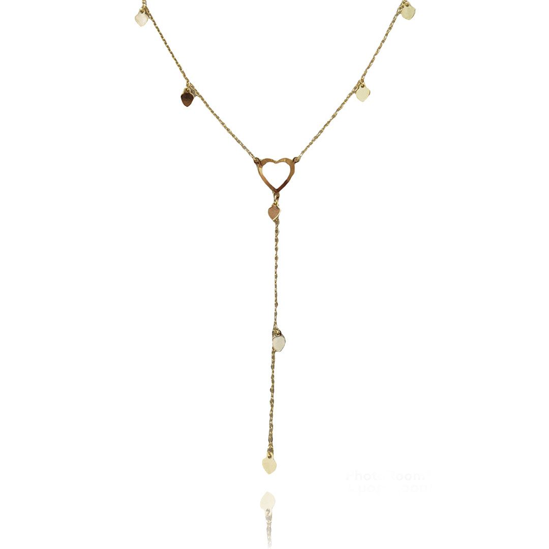 Esse modelo de colar gravatinha é um encanto, impossível não se apaixonar à primeira vista por ele. Seu design é composto por pingentes de pequenos corações, trazendo um chame único para o acessório.