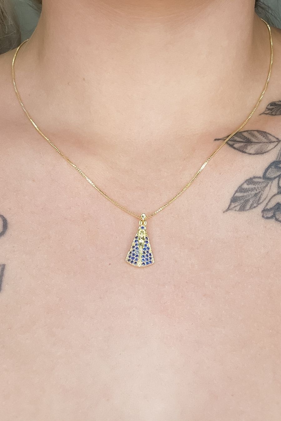 Este colar apresenta um pingente detalhado de Nossa Senhora Aparecida, banhado em ouro 18k, oferecendo um visual espiritual e significativo. O design delicado e cheio de significado torna esta peça perfeita para uso diário ou para presentear alguém especial. Perfeito para quem busca uma joia que simbolize fé e proteção, este colar é uma escolha encantadora e cheia de estilo.