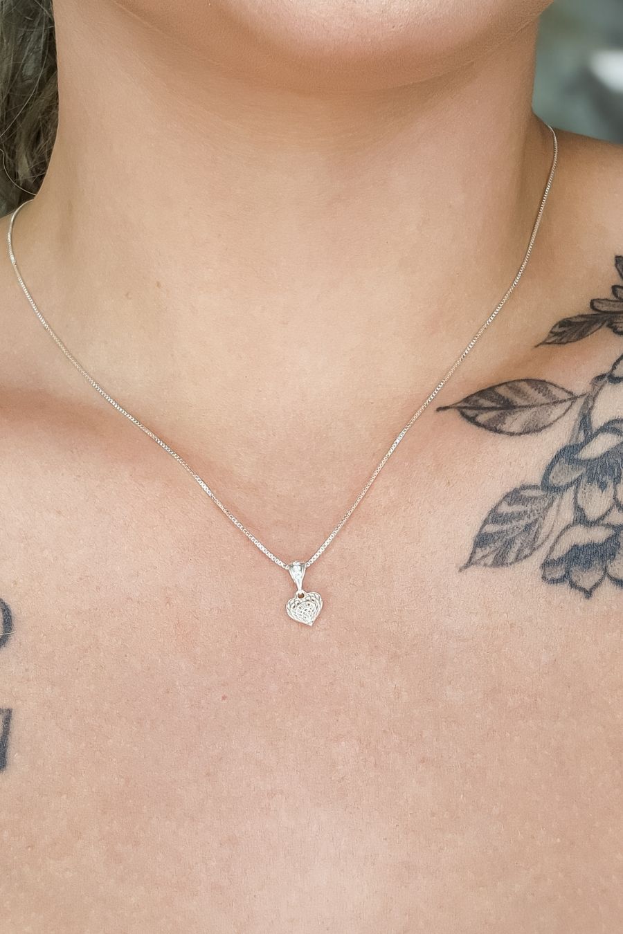 Este colar possui um pingente de coração delicado em prata 925, oferecendo um visual romântico e elegante. O design encantador e sofisticado torna esta peça perfeita para uso diário ou para ocasiões especiais. Ideal para quem busca uma joia cheia de estilo e delicadeza.