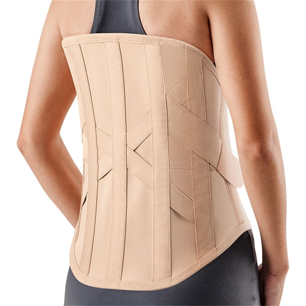 Posicione o colete em torno da região toracolombar (região abaixo do peito e lombar), com o fechamento posicionado para frente. Forneça compressão adequada e confortável através do fecho aderente.