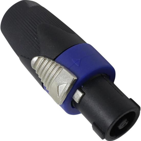 Sendo projetado para suportar uma corrente máxima de 50 A para sinais de áudio, com um ciclo de trabalho de 50%. Isso garante um desempenho estável e confiável durante o uso prolongado. O design ergonômico e prático do conector oferece facilidade de manuseio e uso. Com uma configuração em 4 polos (1+/1- e 2+/2-), permite uma conexão eficiente e precisa entre as caixas acústicas e o amplificador.