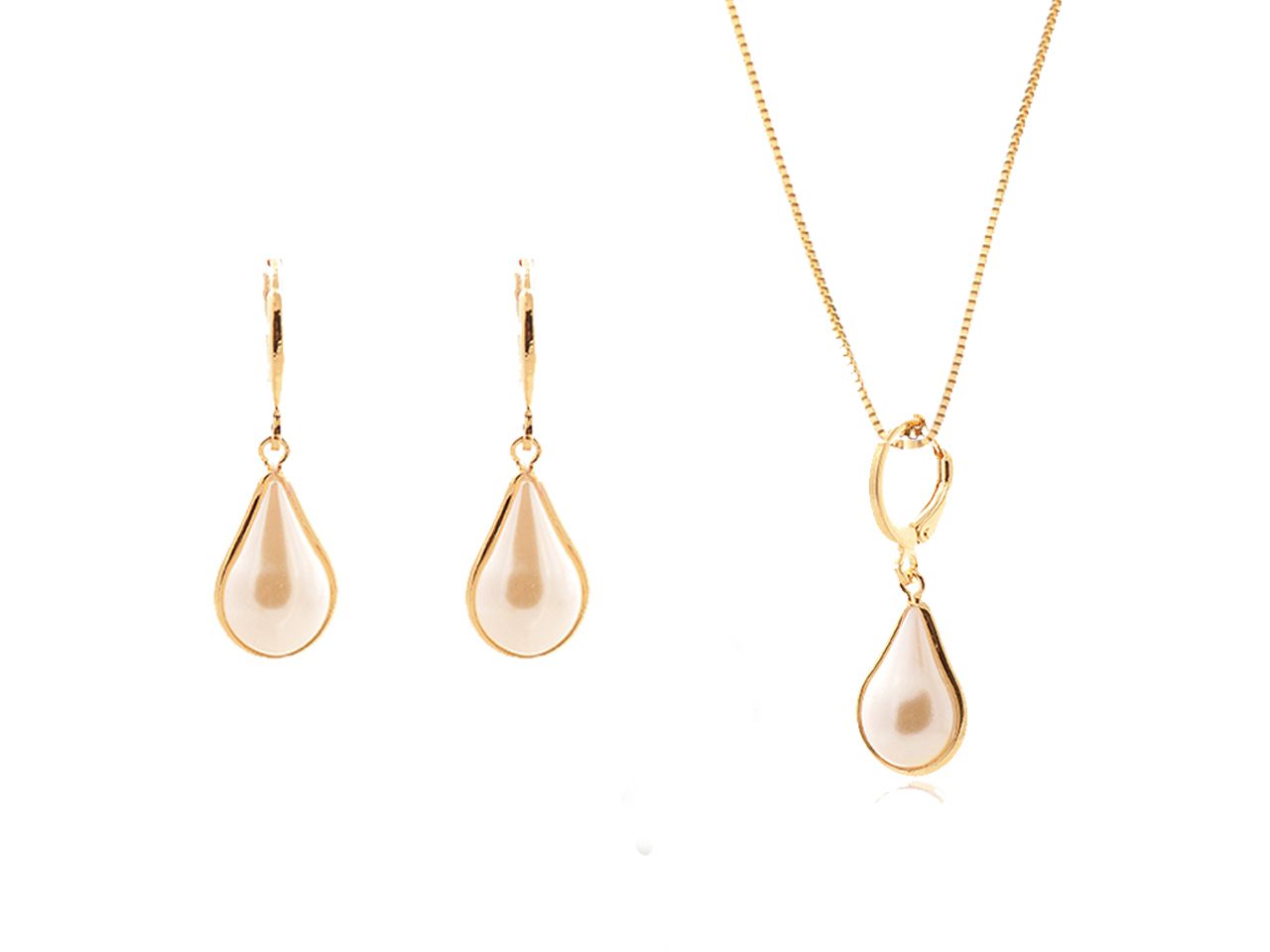 O Conjunto Gota em Pérola tem todo um charme dos clássicos modelos com pérolas, delicado e feminino, com detalhes que fazem toda diferença e deixa esse conjunto ainda mais perfeito para o dia a dia e looks mais caprichosos.