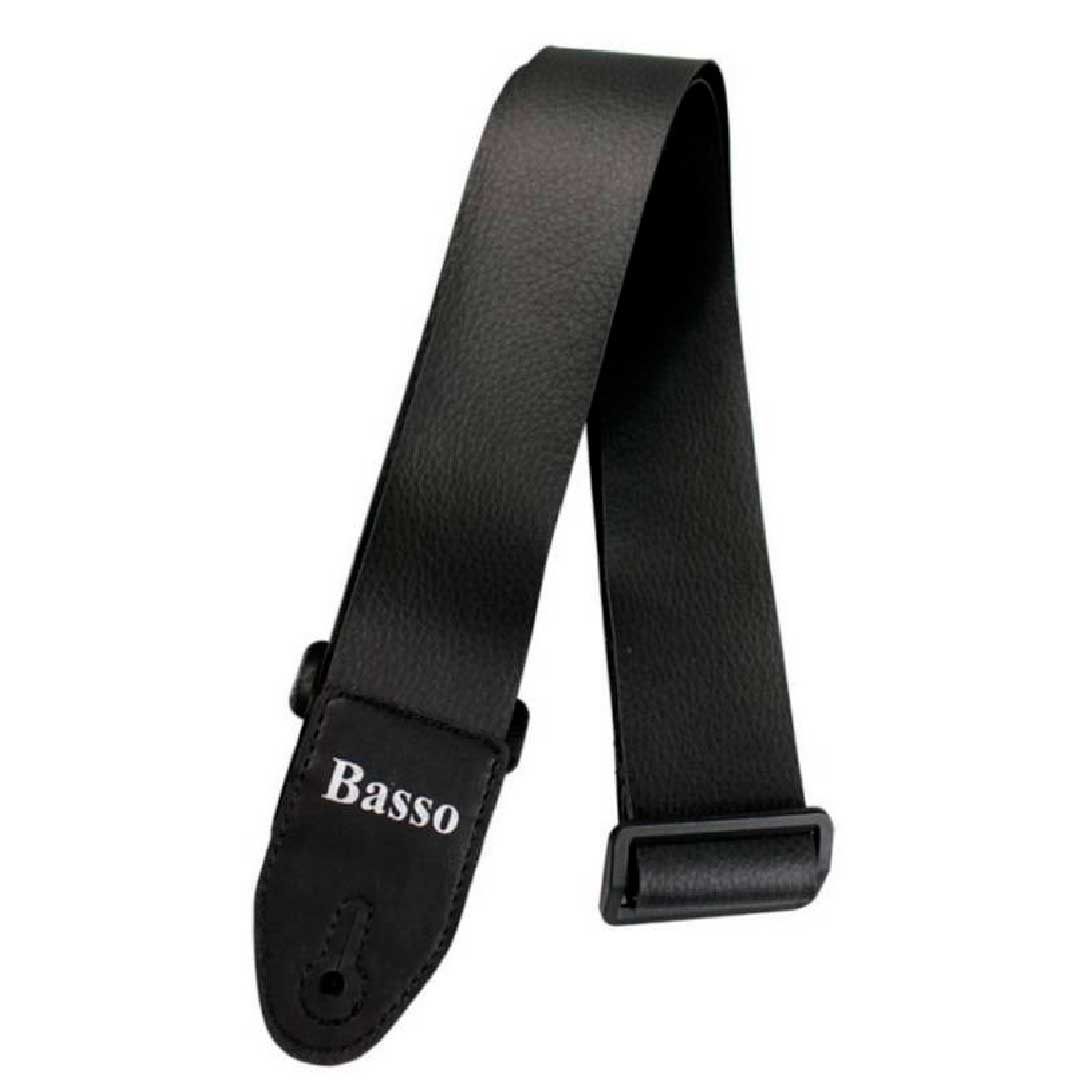 Correia em sintético preto. Possui 5 CM DE LARGURA, forro em sintético para não absorver o suor e ponteiras duplas para maior durabilidade e segurança no instrumento. COMPRIMENTO regulável entre entre 0,85 E 1,50 METROS.