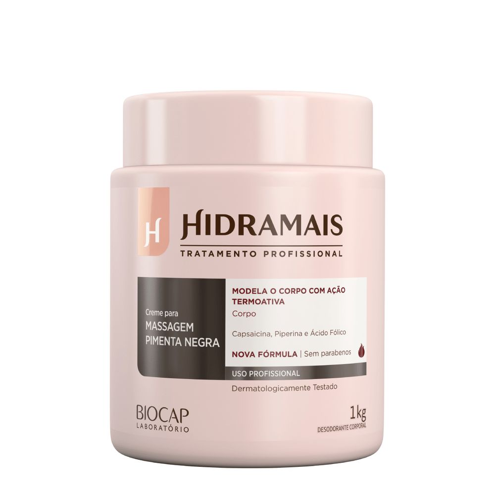 O Creme Pimenta Negra Hidramais melhora a oxigenação sanguínea, reduzindo a celulite. Potencializa os efeitos da massagem modeladora e promove a redução de medidas.