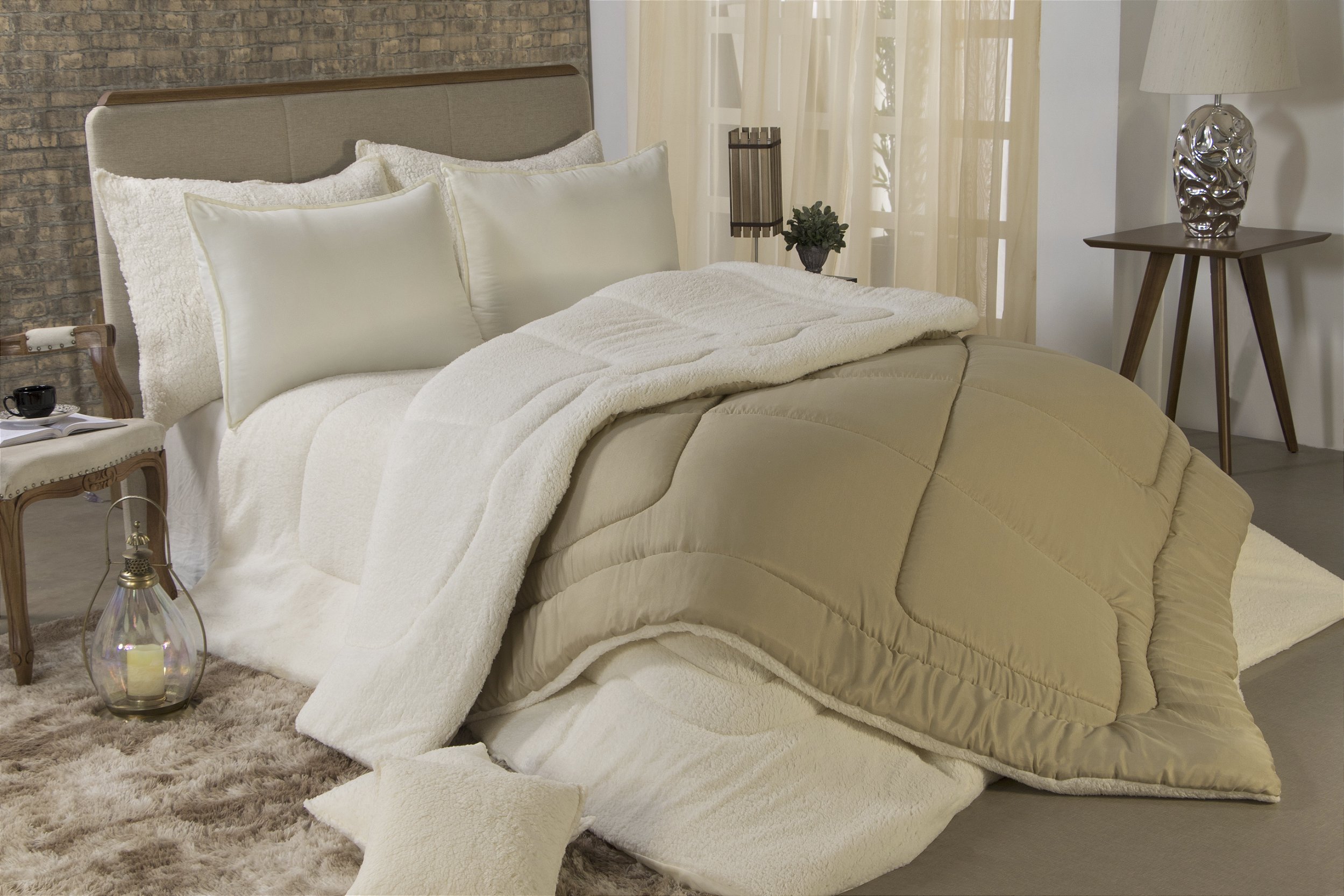 Composto por um lado em micofibra macia que garante todo conforto e outro um tecido antialérgico sherpa pele de carneiro sintético que deixa seus dias mais aconchegantes.