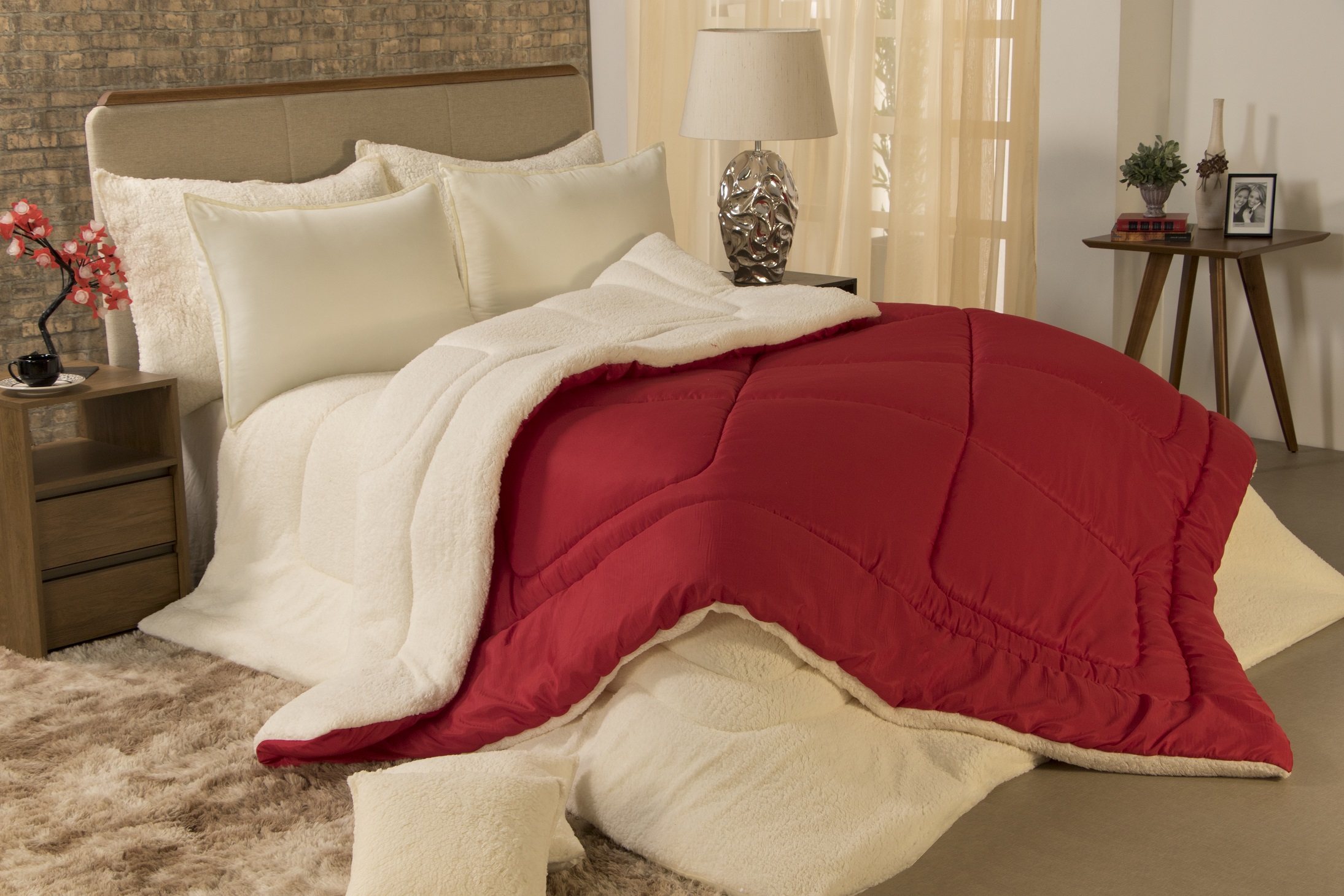 Edredom Coberdrom Queen Size Aspen Dupla Face Sherpa Que Imita Pele De Carneiro Vermelho [F101]