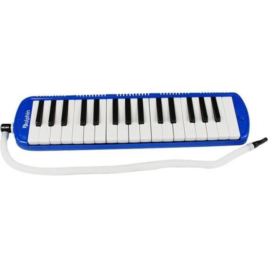 A Escaleta 32 Teclas Com Estojo Azul Dolphin se destaca por sua qualidade sonora, acabamento excepcional e diversidade de cores. Vem com um estojo de ABS muito bonito e prático. Acompanha um bocal para tocar direto na escaleta e um outro com cano de extensão.