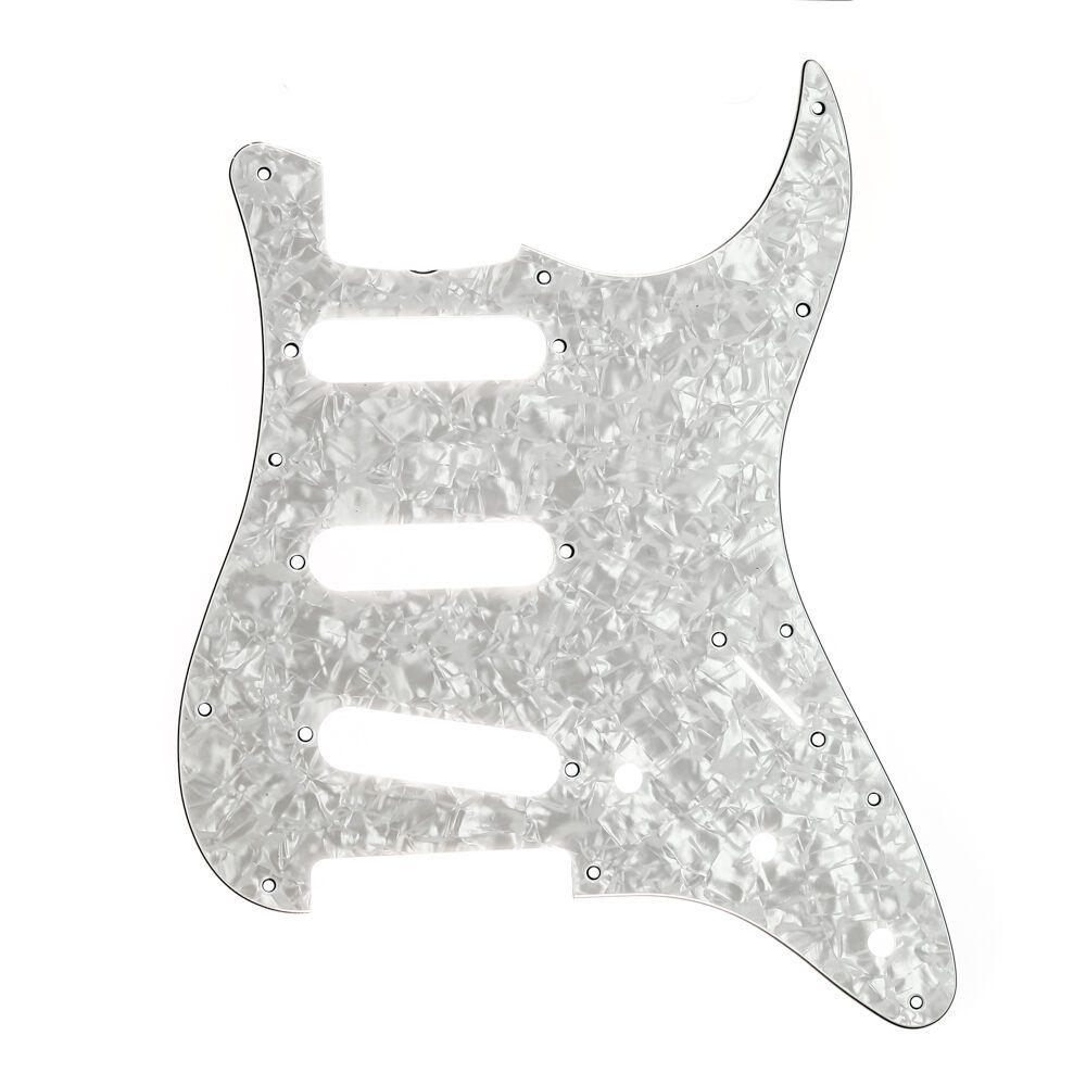 Escudo para Guitarra, estilo Stratocaster para 3 Singles (SSS), modelo 62 JPN Strat, 2.3mm de espessura e 11 furos, 3 camadas e acabamento em Branco Perolado, Spirit Guitar Parts - 200-WHP.