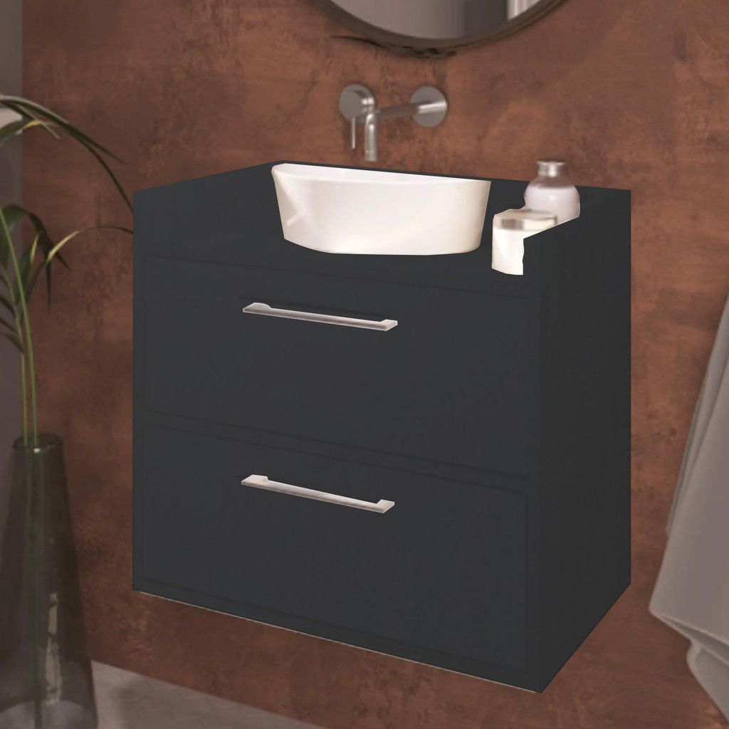 Gabinete Banheiro Suspenso 2 Potas Em Mdf Preto [F031]