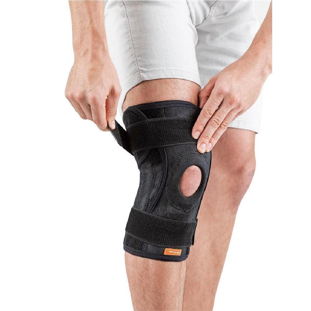 Possui ajuste patelar de 4 pontas auxiliando na compressão e posicionamento na região da patela. O orifício patelar é oval, mais anatômico e acomoda um tubo interno emborrachado para aumentar o alívio da tensão no tendão patelar. Para aumentar a estabilidade do joelho, as 4 barbatanas flexíveis (2 de cada lado) estabilizam sem restringir os movimentos. E o velcro elástico em torno da coxa e da panturrilha oferecem compressão extra e auxiliam na fixação da peça. Confeccionada em Neoprene Plush, retém a temperatura do corpo mantendo a região aquecida, favorecendo a circulação, a recuperação e o alívio da dor.