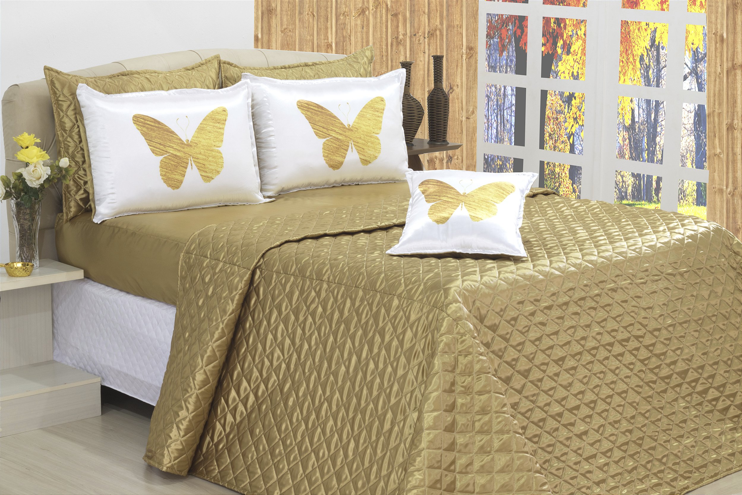 KIT COBRELEITO E LENÇOL CAPIM DOURADO CASAL PADRÃO 07 PÇS