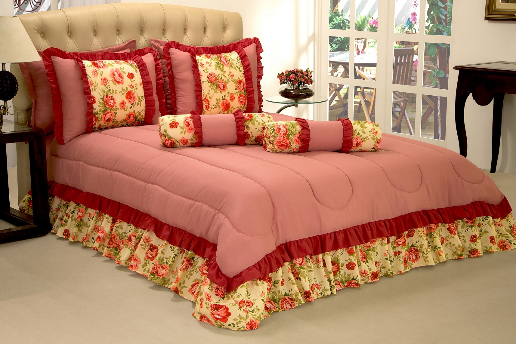 Kit Colcha Edredon Florença casal queen 05 pçs Rose