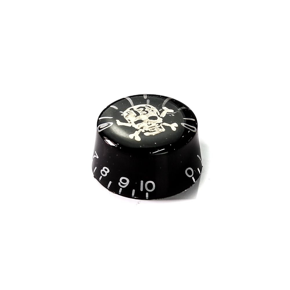 Knob (botão) de plástico translúcido adornado com caveira, 3 unidades, comumente usado nos modelos de guitarras da Gibson e entre outras. Spirit Guitar Parts - LCT-16SKULL.