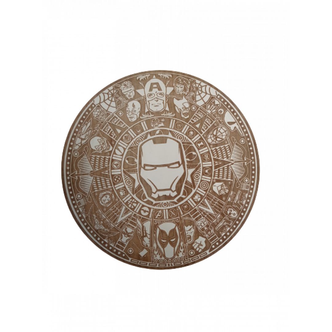 Mandala decorativa da Marvel, Inspirado no calendário Azteca. Trazendo os principais personagens da Marvel, como homem aranha, Homem de ferro e Pantera negra, o toque de personalidade e originalidade que sua sala e quarto pedem!!